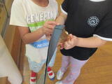 世界一の金メダルに、子供たちは興味津々。実際にメダルを近くで見たり触れたりする貴重な機会をいただき、あちこちから「大きいー!」「重たーい!」「ピカピカしていて、すごく綺麗……」など驚きの声が上がりました。